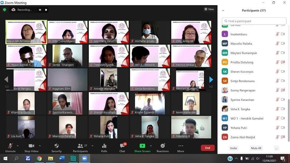 Pembekalan Mahasiswa Magang semester ganjil 2021/2022 FEB Unsrat. Mahasiswa sebelum melaksanakan magang/praktek kerja wajib mengikuti pembekalan selama 2 hari yaitu hari pertama dengan materi dan pematerimya dari Fakultas dan hari kedua dari Pimpinan Jurusan Akuntansi dalam hal ini Ketua Jurusan Dr. Lintje Kalangi,SE.,ME.,Ak.,CA, dan Sekretaris Jurusan Victorina Z. Tirayoh,SE.,MM.,Ak.,CA. Selain mahasiswa, para Dosen Pembimbing Lapangan (DPL) juga turut hadir dan diberikan kesempatan untuk memperkenalkan diri dan mengetahui mahasiswa bimbingannya.