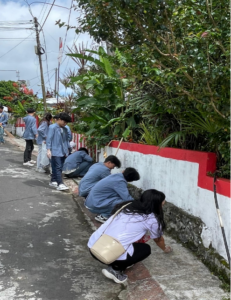 Kegiatan ini dibagi menjadi 2 (dua) sesi, yaitu diawali dengan bersih-bersih lingkungan sekitar yang di lakukan oleh tim dosen dan mahasiswa Jurusan Akuntansi. Lokasi bersih-bersih dilaksanakan diseputaran kelurahan Kinilow dan Kinilow Satu di Kota Tomohon sejak pukul 08.15-10.00 WITA. Para dosen dan mahasiswa Program Studi Akuntansi bahu-membahu membersihkan area sekitar Kantor Kelurahan Kinilow. Aksi ini menjadi simbol bahwa kehadiran civitas akademika tidak hanya membawa menara gading ilmu pengetahuan, tetapi juga kepedulian nyata terhadap kenyamanan ruang publik masyarakat.
